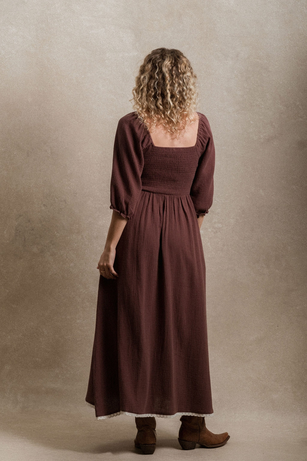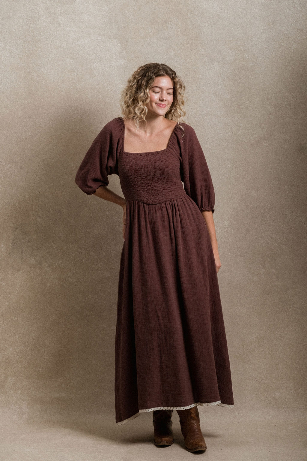 • Embrace effortless style and comfort with the Loveland Dress, crafted from soft, breathable cotton gauze that feels light and airy all day long. Designed with delicate smocking and a flattering V-line at the waist as well as lined, this dress gently defines your silhouette while providing a flexible fit. This piece is maternity and nursing friendly.