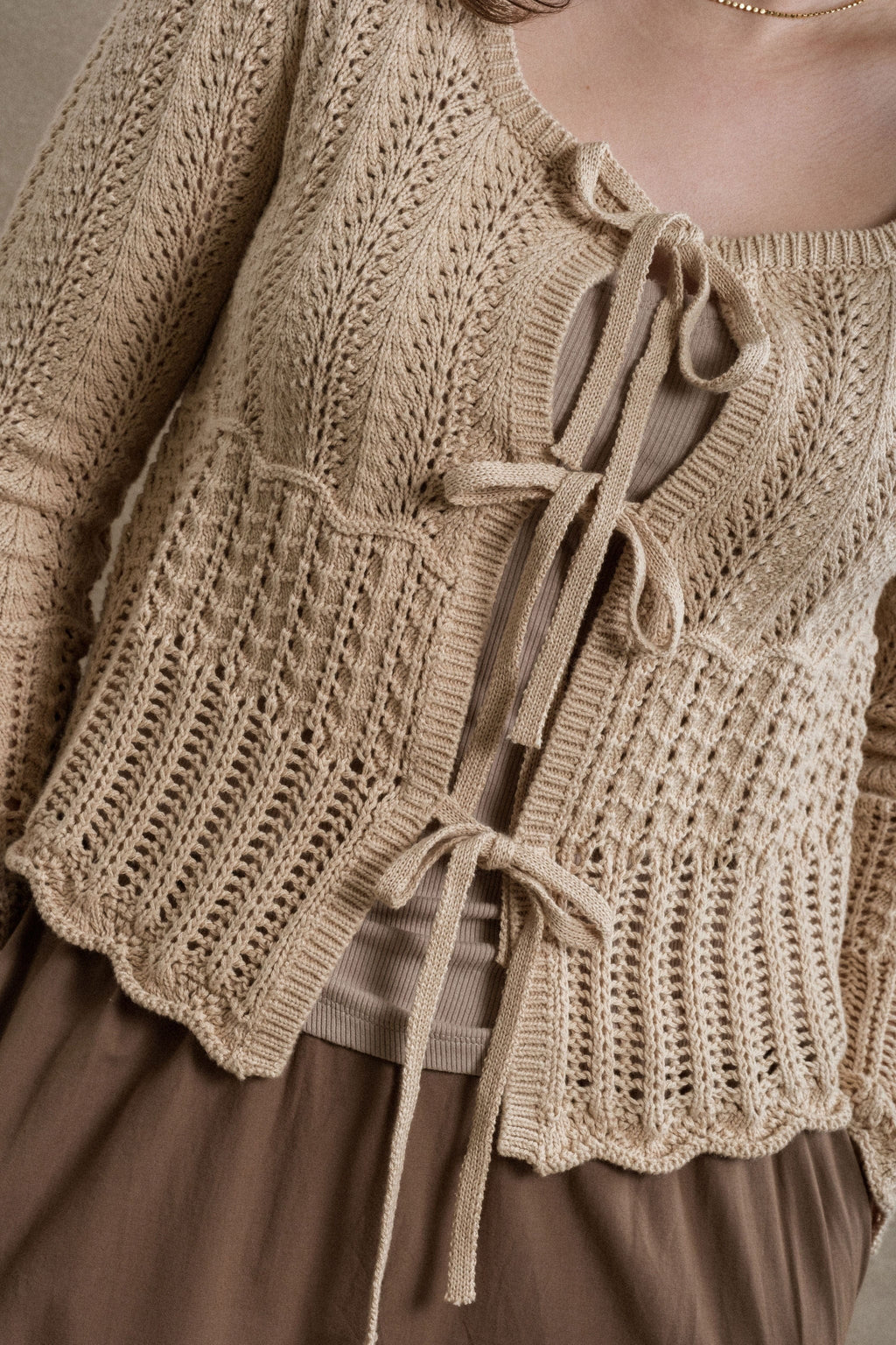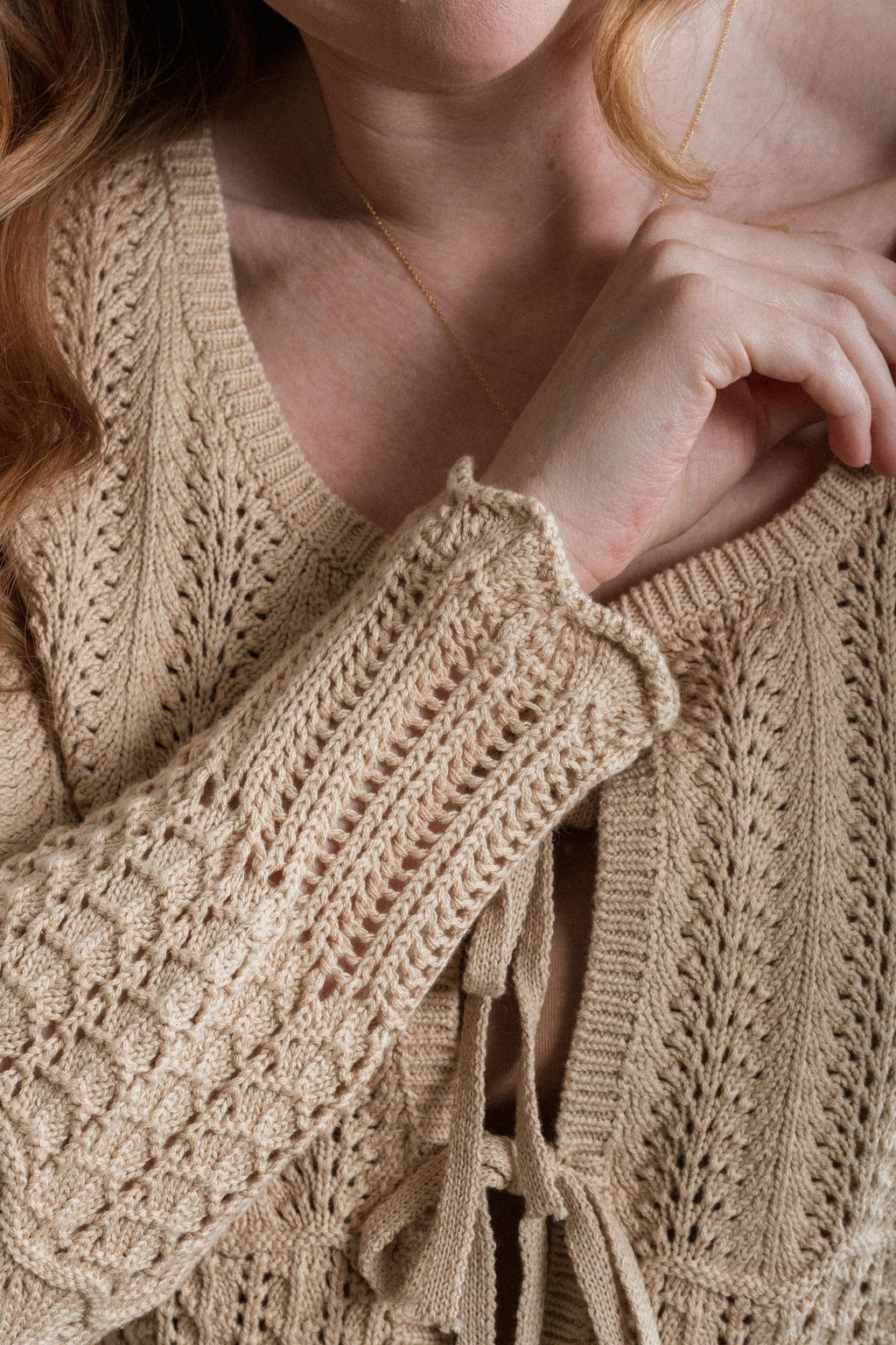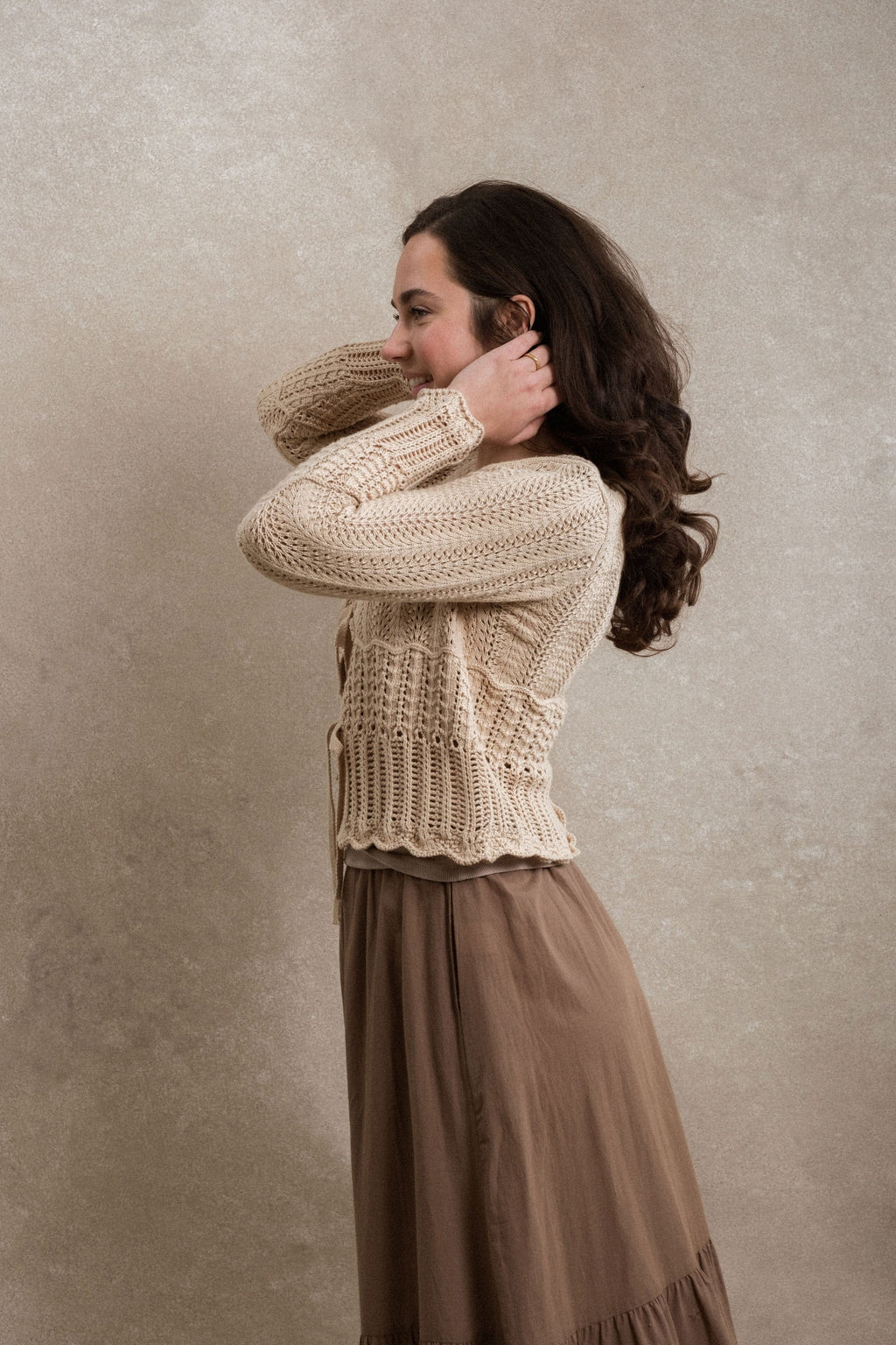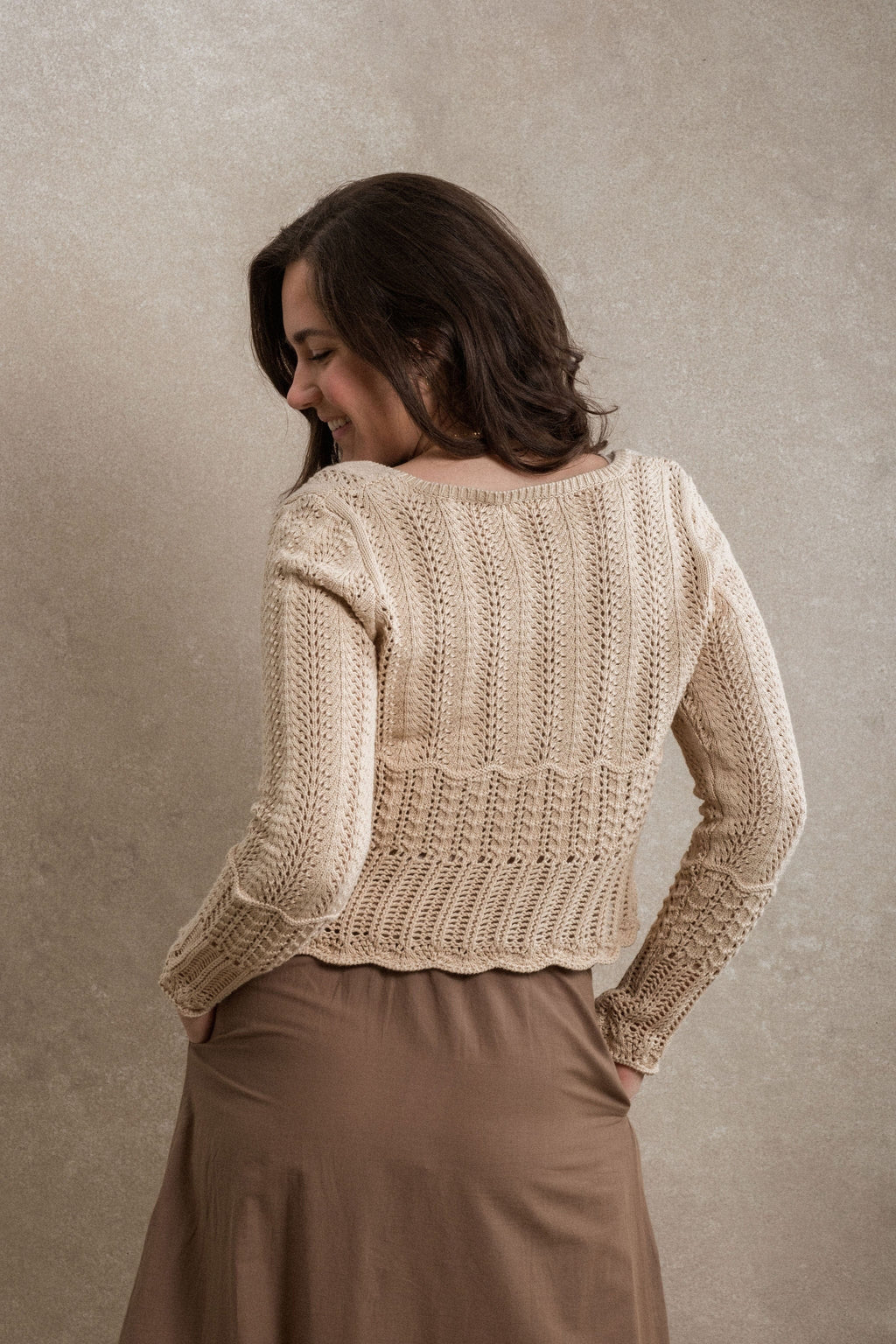 The Eliyah Sweater is such a sweet and thoughtfully detailed piece. Designed with multiple beautiful crochet patterns throughout, this sweater has so much charm and texture. The three functional front ties add a lovely feminine touch, while the scalloped hem finishes the look perfectly. This sweater is perfect for layering over tanks or dresses, or wearing on its own for an effortlessly pretty look you’ll reach for again and again.