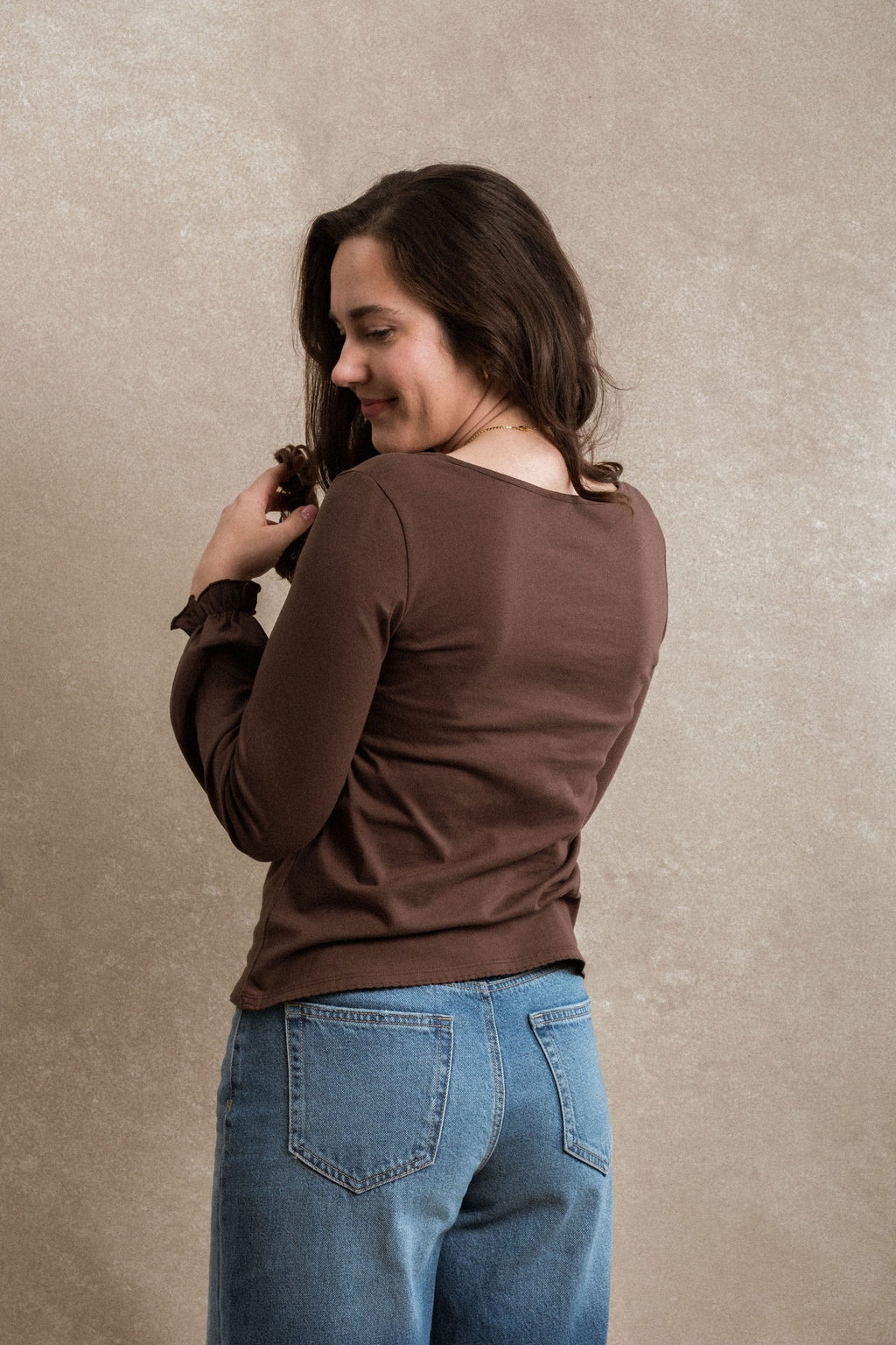- The Kiley Long Sleeve is a fresh take on an everyday basic with just the right amount of detail. Designed with a clean, simple silhouette, this top features elastic sleeves finished with a sweet ruffle for a feminine touch. Easy to style and comfortable for all-day wear.