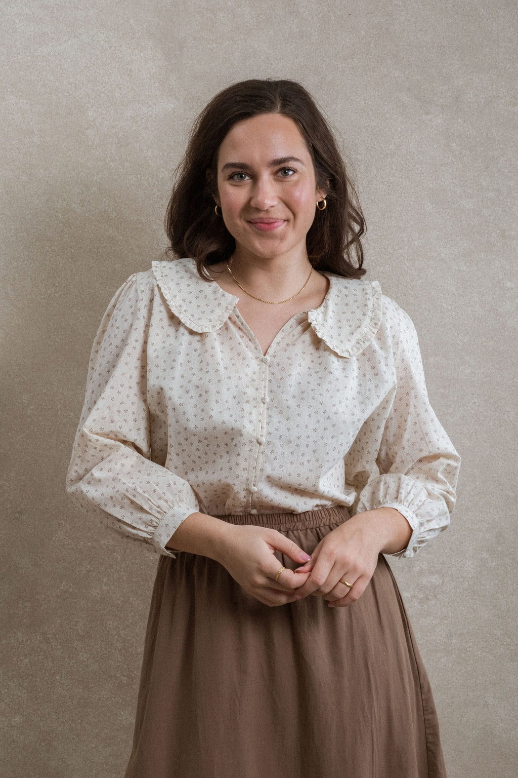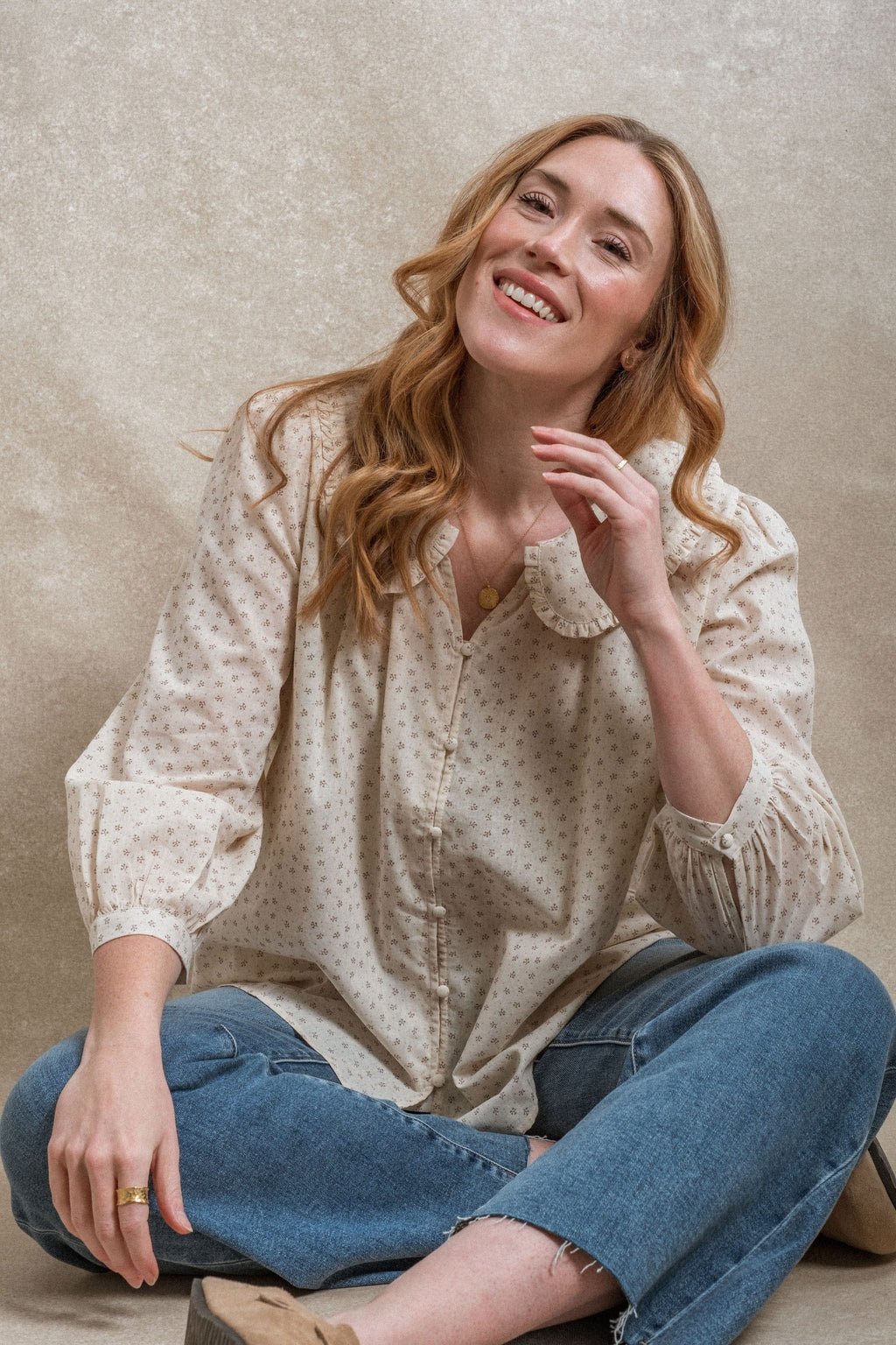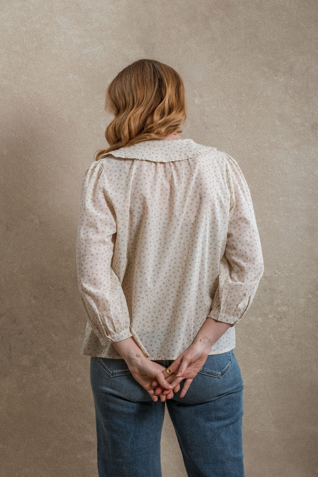 • The Oakley Blouse is a lightweight and charming top with thoughtful details throughout. Featuring functional buttons down the front, a sweet Peter Pan collar, and button closures at the wrists, this blouse balances classic style with effortless wearability. Perfect for layering or wearing on its own, the Oakley adds a touch of timeless elegance to any outfit.