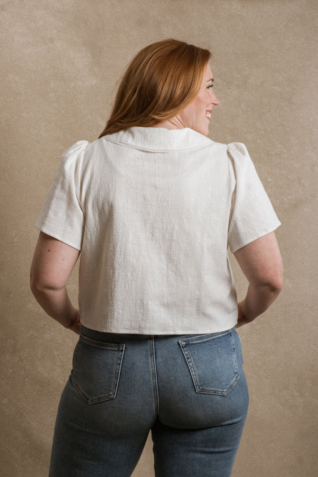 - Add a touch of vintage charm to your wardrobe with this elegant top, featuring a classic Peter Pan collar adorned with delicate lace trim for a soft, feminine look. The three front ties offer a customizable, stylish accent, while the lightweight fabric ensures comfort without sacrificing a sturdy, quality feel. Perfect for both casual and dressier occasions, this piece blends timeless design with modern versatility.