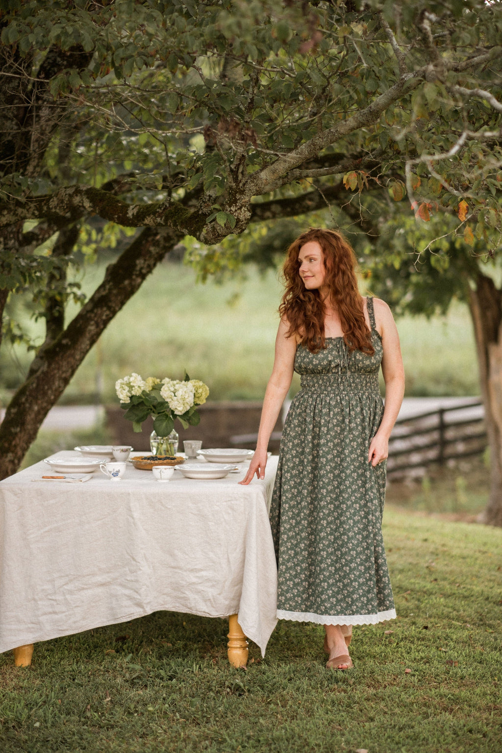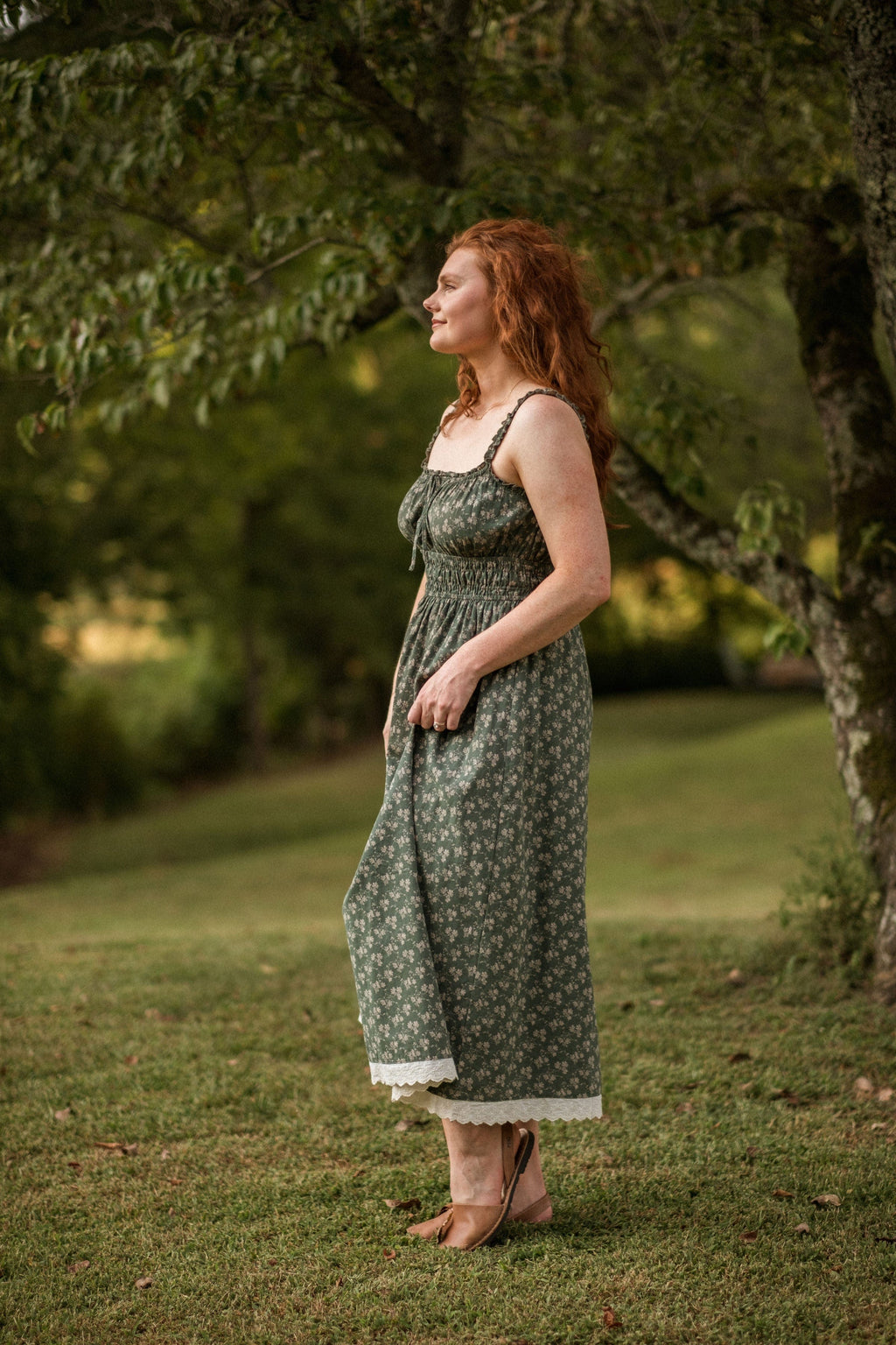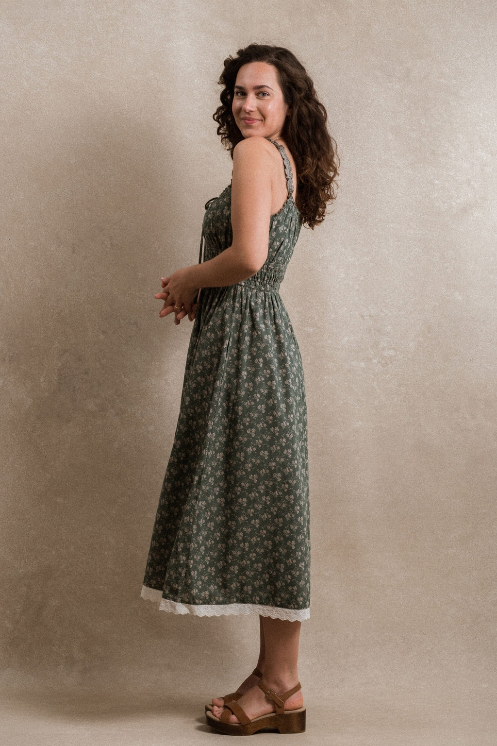 - The Tuscany Dress is a darling piece made from the sweetest floral fabric, perfect for warm days and special moments. It features delicate lace trim, stretchy shoulder straps, and a non-functional front tie for added charm. Maternity and nursing friendly, with pockets for convenience and a fully lined design for comfort. A feel-good favorite you'll reach for again and again.